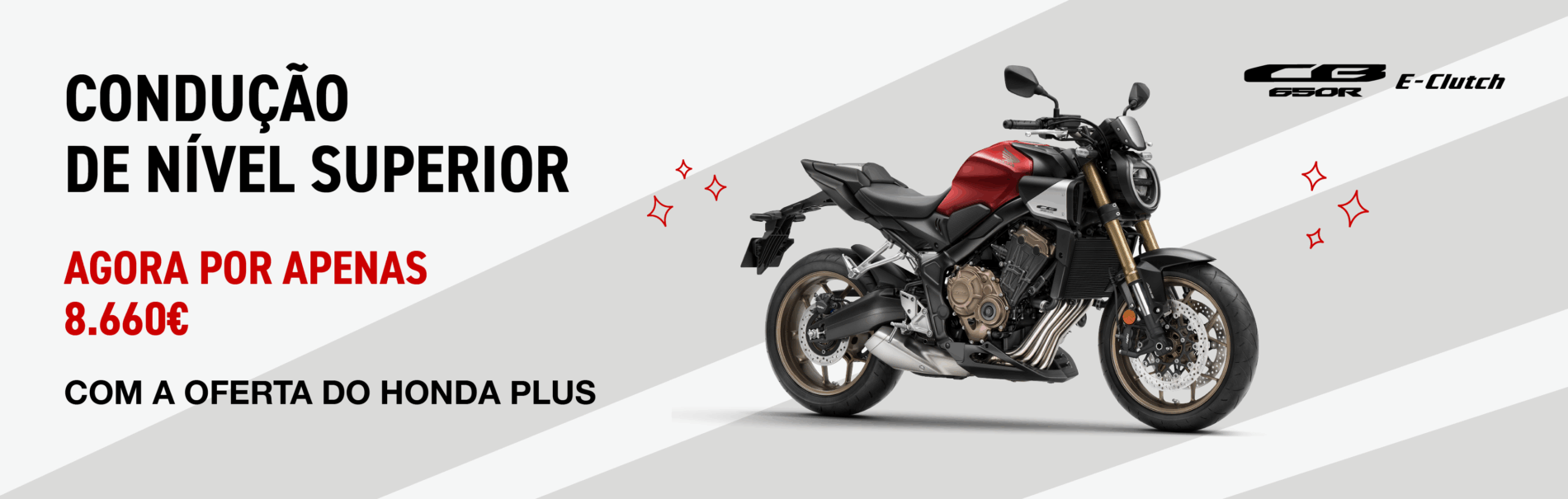 Campanha limitada ao stock existente. Promoção aplicável ao modelo CB650R E-Clutch 2024. Valor da documentação não incluído. Campanha válida até 31/10/2025.